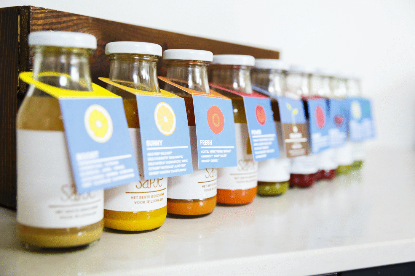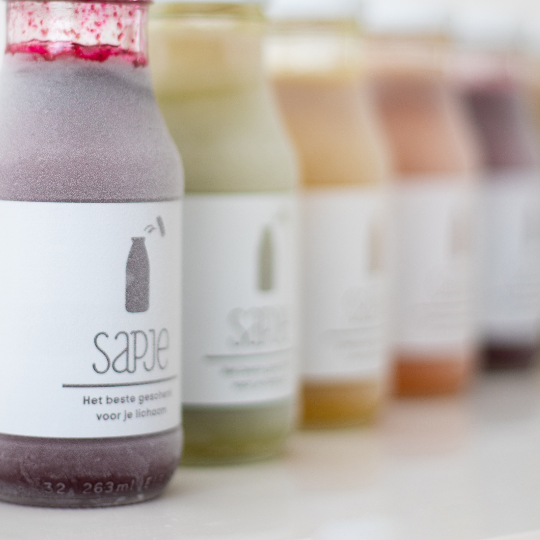 Welcome to Sapje! Our 100% organic vegetable juices are freshly prepared with a slow juicer. Each bottle contains a minimum of 300 grams of vegetables, supplemented with a little organic fruit, herbs and spices. After slow juicing, our juices go directly into the shock freezer to preserve all the vitamins, minerals and of course the taste. So our juices are not only incredibly healthy but also very tasty!